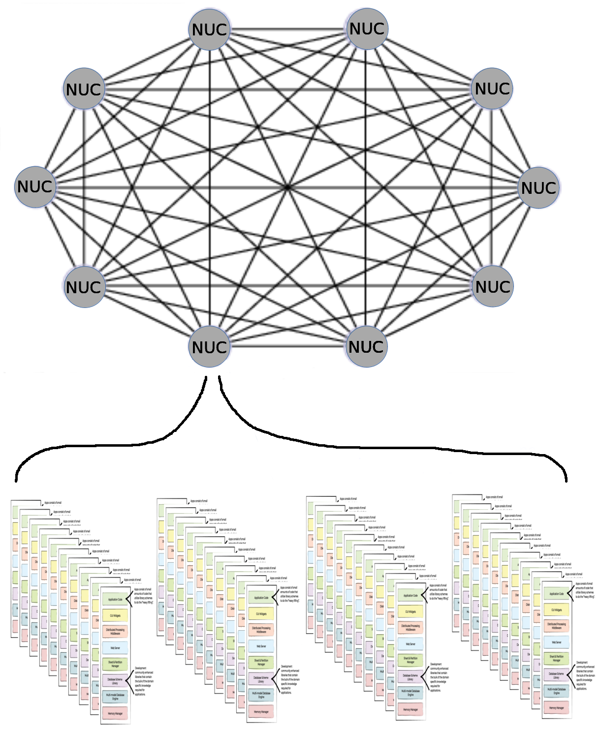 The 40 Fractals on each NUC manage about 25,000 customer each so each NUC handles the processing for about 1 million customers.